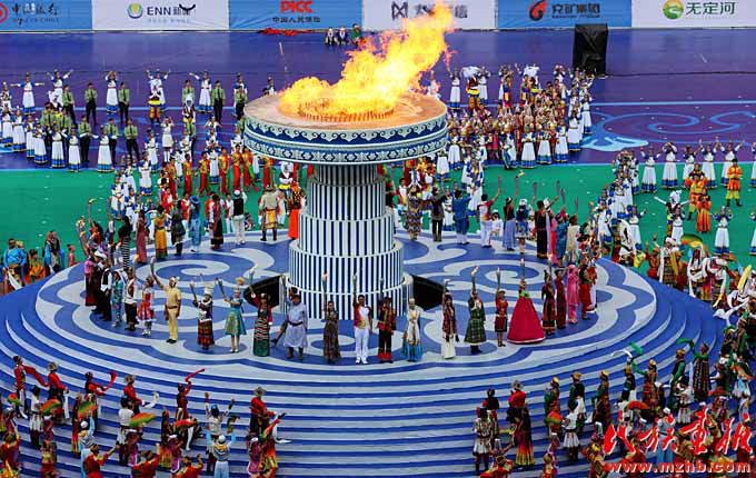 鄂爾多斯集團(tuán)的發(fā)祥地伊克昭盟在2001年改為鄂爾多斯市,改革開(kāi)放以來(lái)經(jīng)濟(jì)社會(huì)迅速發(fā)展,2017年中國(guó)地級(jí)市全面小康指數(shù)排名第九。2015年第十屆全國(guó)少數(shù)民族傳統(tǒng)體育運(yùn)動(dòng)會(huì)在鄂爾多斯市舉辦,這是開(kāi)幕式現(xiàn)場(chǎng)(列來(lái)拉杜 攝影)
