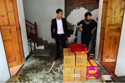 一般要到快過(guò)春節(jié)的時(shí)候,男方家才專門(mén)請(qǐng)人去接女方來(lái)洗糯米、打糍粑,新娘方能在夫家住上一夜;在來(lái)年農(nóng)忙時(shí)節(jié),又接女方來(lái)幫忙,夜里仍不能在男方家留宿,幫完忙當(dāng)晚即回去,只有待到女方有身孕后,新娘才到夫家長(zhǎng)住。圖為11月16日夜,新娘潘芝銀家為準(zhǔn)備婚禮,燈火徹夜長(zhǎng)明。