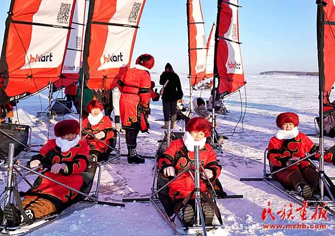當地群眾體驗冰帆運動的無限樂趣。