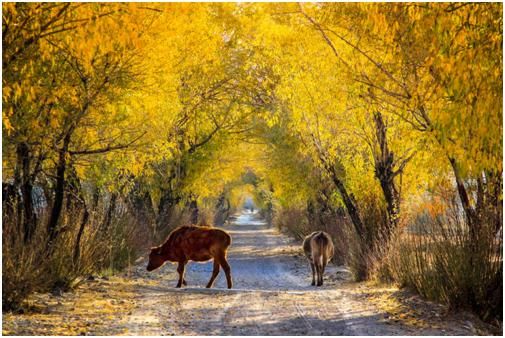 第二點(diǎn),拍攝時(shí)機(jī)的把握上還是差了一點(diǎn),應(yīng)該在牛走到比較亮的地方,才去拍攝,這樣主體會亮一些,在晨光的照耀下,金黃色的毛色也會更醒目。