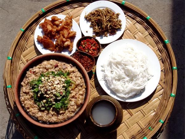 阿昌族還喜歡吃竹筍、竹蛆和蜂蟲、蜂蛹等。竹筍的吃法有鮮竹筍、干竹筍、腌酸筍等。鮮竹筍肉嫩細香,可當蔬菜,也可與肉、豆類等炒著吃。竹蛆是一種生在嫩竹中的蟲蛹,色白個大,肉肥細嫩。有時一節(jié)竹子中有數百條,取出后用油炸脆,色澤金黃,撒點鹽而吃,是一種高蛋白鮮美食品。食用的蜂蟲、蜂蛹主要有黃腰蜂、夜時蜂、草蜂等土蜂類的蛹和幼蟲?;蛘ɑ虺矗愦嗫煽?,營養(yǎng)豐富。