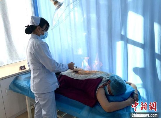 圖為青海省海西州醫(yī)護(hù)人員采用中藏醫(yī)傳統(tǒng)療法治療。(資料圖)(韓明媚 攝