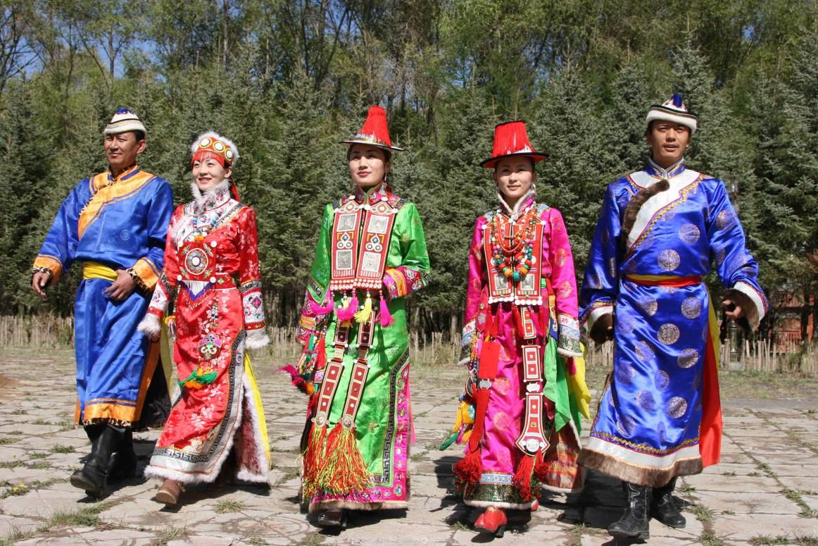 裕固族服飾大致可分為婦女服飾、未婚女子服飾和男子服飾三類。婦女服飾上有“衣領(lǐng)高、帽紅纓”的特征,婦女的帽子特點(diǎn)鮮明,東部各部落的婦女帽子形似禮帽,但頂部呈小圓頂形;西部各部落婦女帽頂則是尖頂,帽沿后部卷起。紅纓帽一般以芨芨草編織或羊毛搟制帽胚,用紅布做帽里,白布做帽面,帽沿為鑲有花紋的黑邊,帽頂配有紅纓,故稱“紅纓帽”。裕固族婦女服飾中的頭面是一件非常精制而價值昂貴的民間工藝品,用銀牌、珊瑚、瑪瑙、彩珠、貝殼等穿綴而成,共分三條,胸前左右兩條,背后一條。頭面也是裕固族已婚婦女和少女的區(qū)別標(biāo)志,婦女出嫁成婚后方可戴頭面。裕固族男子服飾也有其獨(dú)特之處,頭戴金邊白氈帽,帽沿后邊卷起,身穿大領(lǐng)偏襟長袍,衣料大多以布、綢、緞或褐子、獸皮為主,扎彩色腰帶,佩有腰刀、火鐮、鼻煙壺、煙荷包等飾品。裕固族有專門的婚禮服飾,色彩和配飾都有一定的規(guī)矩和要求。