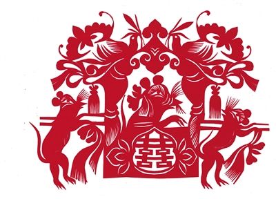 據(jù)民俗專家介紹,剪紙“老鼠上燈臺”“老鼠偷油吃”,也有多子多福之寓意。 “老鼠吃麥穗”“老鼠吃葡萄”“老鼠吃南瓜”中的“麥穗”“葡萄”“南瓜”皆為多籽,用比擬象征手法表達(dá)人們希望子孫滿堂、合家團(tuán)圓的美好心愿。民俗剪紙“子鼠”多出現(xiàn)在臘月至正月,這正是除舊布新的時候,具有祛災(zāi)納福、生生不息的象征意義。民俗剪紙“吉祥鼠”要端端正正貼在窗戶的中心。