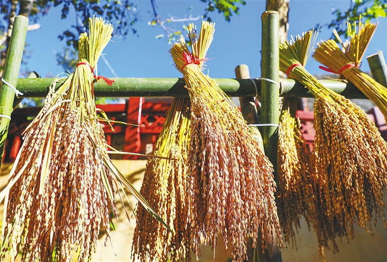 11月21日,在白沙黎族自治縣青松鄉(xiāng)擁處村、青松村等村莊的山坡上、山谷里,放眼望去,在群山疊翠間,漫山遍野都是金黃色的山蘭旱稻,這般豐收的場景尤為賞心悅目。當(dāng)天,2021年白沙“啦奧門”山蘭文化節(jié)在青松鄉(xiāng)擁處村啟幕,活動旨在讓更多的人知曉海南黎族山蘭旱稻的農(nóng)耕文化,進(jìn)一步提升“啦奧門”山蘭文化節(jié)民族品牌活動的影響力,助力鄉(xiāng)村振興“加速跑”。