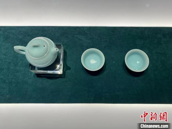 參觀者觀賞青瓷作品。 錢晨菲 攝
