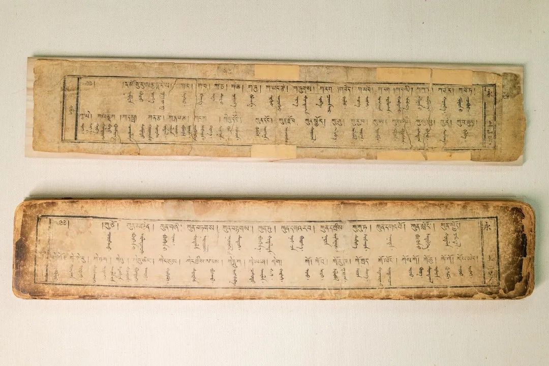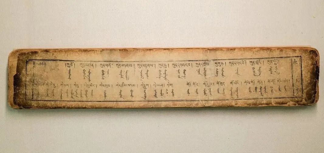 藏蒙對(duì)照詞典《詳解月光辭典》又稱《浩月輝映詞典》,該詞典由阿拉善拉隆巴阿旺丹德?tīng)柧幹?,清道光十八年?838)北京嵩祝寺木刻本。1卷,139葉,頁(yè)面尺寸10.6×56厘米,版框尺寸7.5×49厘米,四周雙欄,梵來(lái)裝。每頁(yè)以藏蒙、藏蒙四行為階梯排列,每列35行,每行1字。頁(yè)面左側(cè)有藏文頁(yè)碼,右側(cè)有漢字《永》和漢文頁(yè)碼。