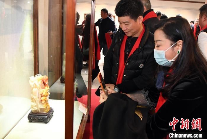 中國(guó)工藝美術(shù)大師葉子賢壽山石雕傳承展吸引觀眾觀看?!∮浾邉⒖筛?攝