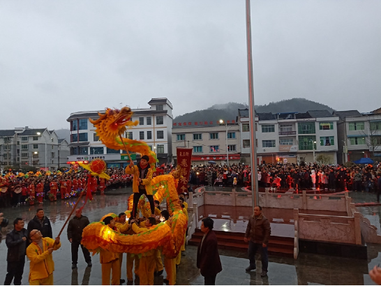 2019年2月16日農(nóng)歷正月十二是瓦寨鎮(zhèn)傳統(tǒng)大型集會活動日,舞龍為主要活動之一。午飯后,來自全縣各地的舞龍舞獅隊、花燈隊陸續(xù)到瓦寨政府廣場集結,并在廣場右側有序排隊等待,各隊隊員精神抖擻、神采飛揚、迫不及待。前來參觀元宵舞龍的群眾和游客也不斷涌向廣場,大街小巷行人猶如潮涌,吆喝聲、歡笑聲、鑼鼓聲連綿不斷……下午五時許,活動在瓦寨鎮(zhèn)政府廣場正式開始,先是由鎮(zhèn)領導對脫貧攻堅各項惠民政策及5年來瓦寨取得的攻堅戰(zhàn)績進行宣講,宣講慳鏘有力、扣人心弦,特別是5年來瓦寨取得的攻堅戰(zhàn)績,一致得到人民群眾好評和認可。隨后,舞龍、舞獅、花燈表演紛紛上演,只見黃龍時而上下翻騰,時而昂首擺尾,雄獅時而就地打滾,時而賣萌撒嬌,樣子憨態(tài)可掬,花燈表演幽默滑稽,在前行中跑出各種套路,起伏波動、生動活潑,吸引了所有人的目光,贏得了陣陣喝彩……