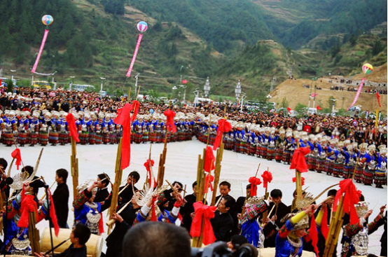貴州雷山苗族至今仍保留“以十月為歲首”的紀年法。每年的農歷十月,雷山苗寨一派歡騰,開展極富特色的辭舊迎新活動。