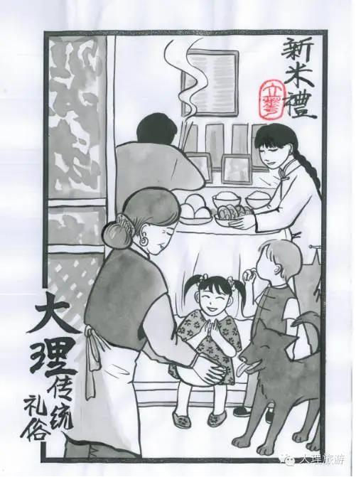 孩子們眼巴巴地看著阿奶阿媽在供桌前擺上已經(jīng)煮好的雞、魚和豬肉,呈上熱騰騰的新米飯,還敬茶、敬酒,跪拜禱告結(jié)束后,阿媽又從甑子里舀出一碗新米飯,拿到院子給大黑狗吃,說(shuō)大黑看家護(hù)院勞苦功高。