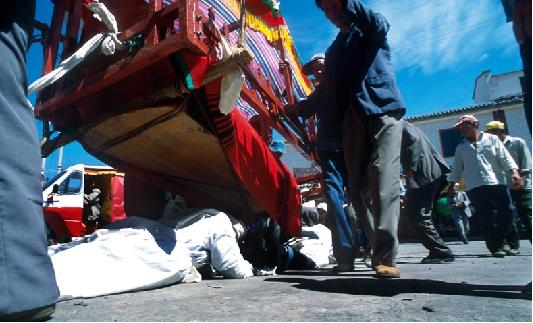 2、出棺送葬:出殯時,街坊鄰友自帶抬具幫助抬棺。為死者念經(jīng)引路,孝男拄拐哭喪棒走在棺前,孝女走在棺后。棺材抬至繞棺處,擺在高凳上,由念經(jīng)先生舉行繞棺儀式。念完《繞棺經(jīng)》,稱為“搭橋過路”,遇到過橋時,孝男跪在橋上,棺從身上抬過,稱為“背棺”。