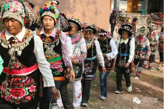散居于哀牢山上段的彌渡牛街彝族鄉(xiāng)彝族分“迷撒支”和“羅羅潑支”兩個支系,均為來自巍山、南澗的南詔后裔?!懊匀鲋А敝饕植加谀菊啤s華兩個村委會,而“羅羅潑支”各村委會均有零星分布。彝族服飾,如果按地域來劃分,可以分為涼山、烏蒙、紅河三大類,牛街彝族服飾屬于“烏蒙”類。