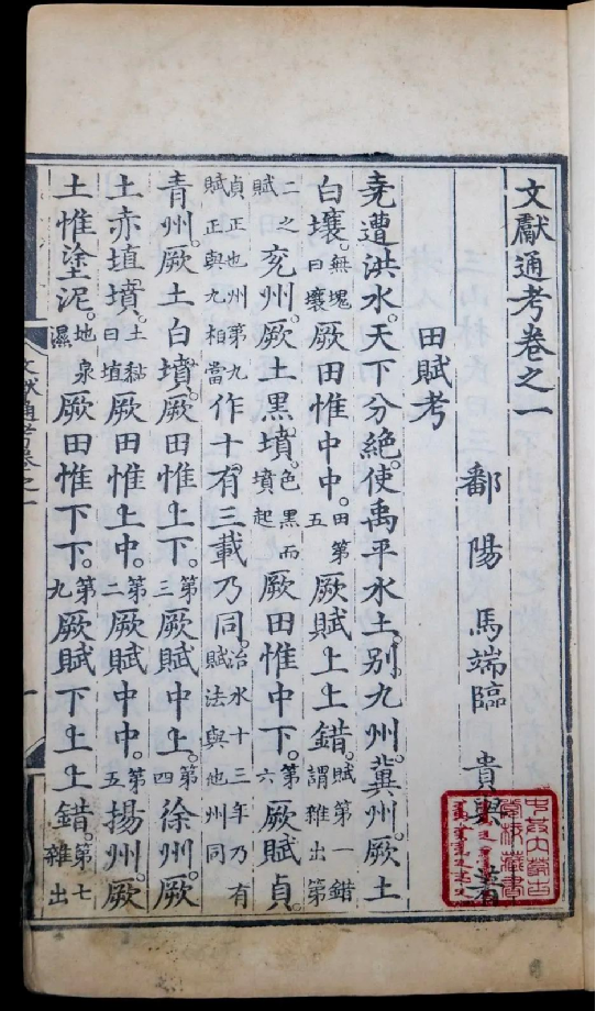 馬端臨(1254-1322),字貴與,號竹洲,饒州樂平(今屬江西)人。十九歲時以蔭補承仕郎,二十歲時漕試為第一。宋亡后,隱居家中讀書寫作,其在元至元二十二年(1285)前后開始編撰《文獻通考》,歷時二十多年,于元成宗大德十一年(1307)編纂完成。由于卷帙巨大,加上個人財力有限,《文獻通考》并沒有立即得以刊刻流傳。直到延祐四年( 1317)道士王壽衍受元仁宗委派前往東南尋訪“道行之士者”,發(fā)現(xiàn)馬端臨所撰《文獻通考》“與唐杜佑《通典》相為出入”可補《通典》之缺,申請刊刻。仁宗采納了王壽衍的建議,于至治二年( 1322)由西湖書院主持刊刻,馬端臨不顧年邁負責(zé)???,全書至泰定元年( 1324)始告刊成。