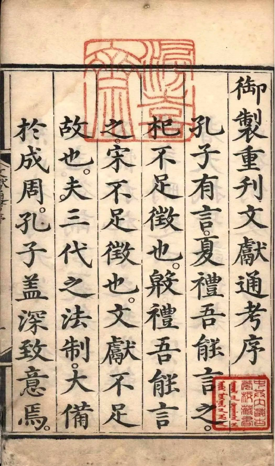 《文獻通考》所述歷代典章制度,上起上古,下至南宋寧宗嘉定末年。該書立目參照《通典》,并有所發(fā)展。全書分為二十四考,每一考前有小序,說明著述的成規(guī),考訂的新意,每考之下又分為若干子目,子目內(nèi)容皆按時間先后排列。撰寫體例是按文、獻、考三個層次排列,凡頂格排行者,即所謂“文”,也就是“敘事”部分。凡低一格排行者,即所謂的“獻”,也就是“論事”部分。凡低兩格排行者,即所謂“考”,也就是作者自己的議論,其內(nèi)容包括指點歷史演變的線索、評判是非、考辨史料和解釋名物等。