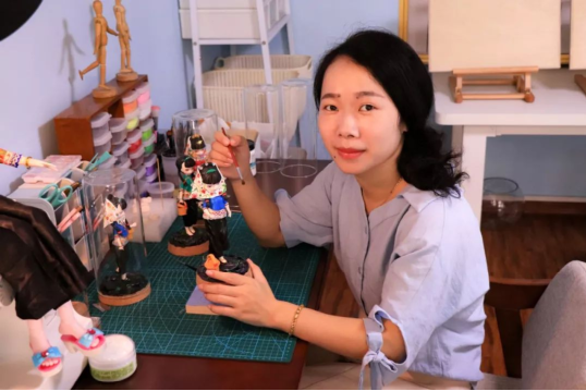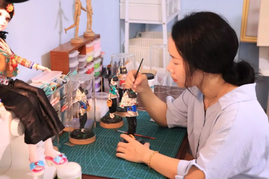 讓人驚艷的,還原度無(wú)比高的作品人物服飾,這其中還有冰冰媽媽的一些的建議呢,雕雕琢琢,便有了生動(dòng)形象的這些精致作品。聊起整個(gè)創(chuàng)作過(guò)程的冰冰,笑盈盈地說(shuō):創(chuàng)作粘土惠女作品,是一件讓我感到滿足和幸福的事情。之后也會(huì)持續(xù)創(chuàng)新,精益求精地進(jìn)行創(chuàng)作。