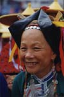 惠東女服飾文化源遠流長,其形成、發(fā)展過程一直是中外人類學(xué)、民俗學(xué)專家關(guān)注的課題。其來源有種種傳說,目前尚無定論。據(jù)史料記載,清代中后期,惠東婦女上穿黑色或紫色長袖挖襟衫,下穿黑色大折褲。衣長、胸、腰背寬闊,下沿稍呈弧形外展,與清代流行的“大夫衫”(長式挖襟衫)類似。不同的是袖口偏窄,袖子接長,故名“接袖衫”又名“卷袖衫”接袖的用意十分有趣,為的是讓新娘入洞房時提起長袖以遮掩一臉羞紅;過了3日,才在長袖一半處翻卷逢住固定。到了清未“接袖衫”各部分略為收縮,衣沿弧度加長,臂圍寬度加闊并向外彎展,腰圍處的中式紐攀減少,兩個連在一起,袖口繞藍布邊。領(lǐng)圍上刺繡圖案由簡變繁,領(lǐng)根下方形色布改為三角形。胸、背中線兩側(cè)綴做兩塊方形黑色、深褐色綢布,其四邊各鑲接一塊三色形色布,改稱“綴做衫”。褲子為“大折褲”又名“大筒褲”,俗稱“漢裝褲”。褲一般用黑色布,也有用藍色的。褲腳寬約1.2尺,褲頭約2尺,縫一道5寸的藍色布邊。其樣式從清代中后期至今沒有多大變化,惟質(zhì)料由舊時用粗布,今天改為通用黑綢布?;輺|女服飾,歷來重視腰以上部分,特別以頭飾最為突出,花樣繁多,不同場合、不同年齡的頭飾有明顯區(qū)別。