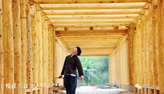 2003年,楊家第四代木構(gòu)傳承人楊求詩,成功出師。由于深得祖?zhèn)骷妓?,加之勤奮好學(xué)、悟性高,楊求詩很快成為當(dāng)?shù)赜忻哪窘硯煾?。楊求詩建造的木建筑有鼓樓、風(fēng)雨橋、吊腳樓、戲臺、寨門、涼亭等,不僅繼承“干欄”式建筑的優(yōu)良特點,而且內(nèi)設(shè)吊腳,使建筑更加美觀,創(chuàng)立了別具一格的木建筑工藝體系。最近幾年,他陸續(xù)承接了一些外地的莊園、度假村、風(fēng)雨橋、長廊、寨門等項目,但更多的還是修建本地鼓樓,三江的平懂、皇朝、獨峒的鼓樓均出自他的雙手。