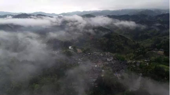 4月14日,無人機(jī)航拍的三江侗族自治縣洋溪鄉(xiāng)高露村中寨屯美景