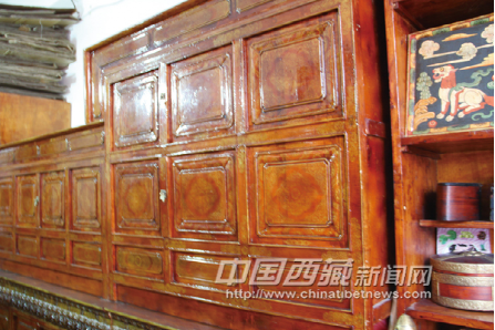 但由于西藏特定的地域分布規(guī)律的限制,森林主要分布于西藏東南部以及喜馬拉雅山南坡的濕潤(rùn)地區(qū),高原內(nèi)部缺少木材,交通運(yùn)輸?shù)睦щy,過(guò)去經(jīng)濟(jì)落后時(shí),只有高層僧侶、貴族或上層人士才用得起精美的藏式家具。所以在藏族家庭中,如果有一套精美的藏桌、藏柜和酥油茶桶,主人則引以為榮。藏式家具成為財(cái)富的象征,家具數(shù)代相傳。傳統(tǒng)精美的藏式家具進(jìn)入尋常百姓家庭,只是近幾十年間的事。