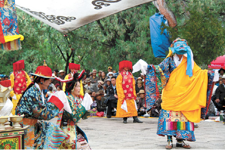 覺木隆藏戲經(jīng)過唐桑、米瑪強(qiáng)村、扎西頓珠等幾代著名藝術(shù)家的組織經(jīng)營、精心創(chuàng)造和改革,逐步興盛起來,還培養(yǎng)出了一些著名的演員,如阿媽拉巴、阿媽次仁、阿古登巴、次仁更巴等。二十世紀(jì)三四十年代以后,覺木隆藏戲的影響逐漸擴(kuò)展到西藏全境,受其影響的民間戲班遍布山南、日喀則、昌都、阿里等地區(qū)。