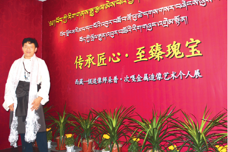 2016年9月2日,以“傳承匠心·至臻瑰寶”為主題的朵普·次嘎金屬造像藝術(shù)個(gè)人展在西藏博物館開幕。 圖為朵普·次嘎的紀(jì)念照片。