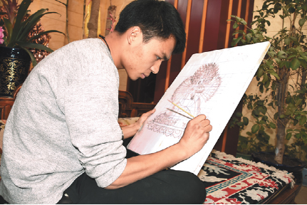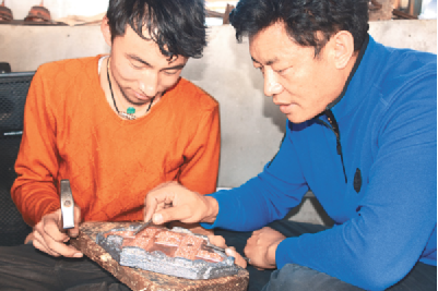 技藝上的登峰造極,次嘎把這一秘笈歸結(jié)成幾個(gè)平常的字眼:“興趣和堅(jiān)持”。從小受家族文化的熏陶,兩個(gè)兒子對(duì)傳統(tǒng)文化有著濃厚的興趣。薪火相傳也成了次嘎肩上的責(zé)任。20出頭的大兒子扎西拉達(dá)穿著白T恤,皮膚白皙、手指纖長、陽光帥氣,立志要子承父業(yè)?!案赣H告訴我即便是要做一名手工藝人,也不能放棄對(duì)文化知識(shí)的學(xué)習(xí),從小便把我送到內(nèi)地學(xué)習(xí)?,F(xiàn)在,我長大了,該回來了?!?扎西拉達(dá)的話語堅(jiān)定。