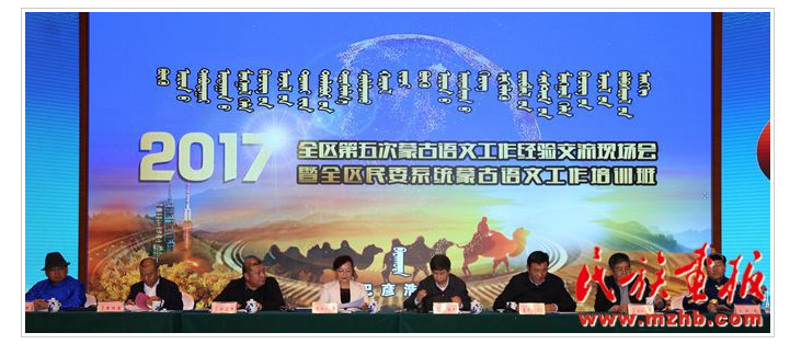 2017年11月28至29日,內(nèi)蒙古自治區(qū)第五次蒙古語文工作經(jīng)驗(yàn)交流現(xiàn)場會(huì)暨全區(qū)民委系統(tǒng)蒙古語文工作培訓(xùn)班在內(nèi)蒙古自治區(qū)阿拉善盟召開