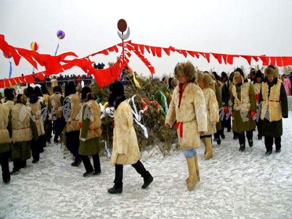 “祭湖”儀式的場(chǎng)面非常壯觀,并帶有幾分神秘的色彩。按照歷代沿襲下來(lái)的習(xí)俗,查干湖漁獵必須由當(dāng)?shù)氐?高望重的“魚把頭”主持儀式,舉行祭祀湖神,喚醒冬網(wǎng),祭拜天父地母,保佑萬(wàn)物生靈永續(xù)繁衍,百姓生活幸福安康。在冰面上,擺放糖塊、炒米、水果、奶干等供品,點(diǎn)燃香火、炭火鍋,進(jìn)行誦經(jīng)祝辭,祝愿漁獵平平安安,多出 魚出好魚。