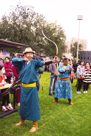中央民族大學(xué)操場(chǎng)上熱鬧非凡。悠揚(yáng)的馬頭琴聲,飄香的奶酒,繽紛絢麗的蒙古族服飾,搏克、射箭等競(jìng)技活動(dòng)以...