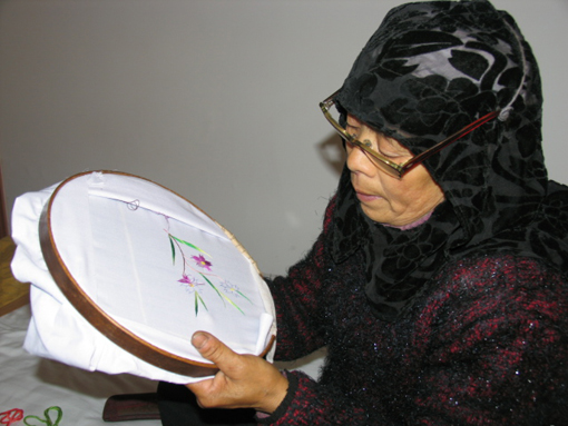 刺繡花草圖案和幾何圖形,是回族婦女刺繡的絕技。如枕頭、坎肩、掛圖、圍裙等處繡的花卉,形象非常逼真。有些刺繡作品,很注意變化裝飾,給人以整體美。她們往往擷取大自然中各種不同的植物葉,構(gòu)成自己想象中的花草樹木,技與葉、花與蔓和諧地統(tǒng)一?;刈鍕D女刺繡技藝,既富有生活特色,又充滿美好愿景。
