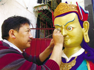 西藏自治區(qū)拉薩市城關(guān)區(qū)恰彩崗路11號是八廓街東面諸多巷院里一個極其普通的大院。在這里,一個集土建、唐卡繪畫、金屬雕刻、木雕、古藝建筑研究、西藏傳統(tǒng)手工藝技能培訓(xùn)為一體的國家文化產(chǎn)業(yè)示范基地——拉薩古藝建筑美術(shù)公司就坐落在這個古樸的大院內(nèi)。