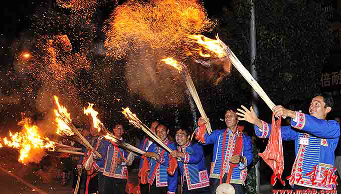 火把節(jié)是彝族傳統(tǒng)節(jié)日中最普遍、最隆重、最富有民族特色的節(jié)日,一般在農(nóng)歷六月二十四至二十六舉行,楚雄彝族火把節(jié)于2006年5月經(jīng)國務(wù)院批準為第一批國家級非物質(zhì)文化遺產(chǎn)保護項目。節(jié)日內(nèi)容集民俗活動、經(jīng)貿(mào)活動、文體活動和社交活動于一體,像磁石一樣吸引著各族群眾,許多人就是通過參加火把節(jié)認識了彝族,知道了楚雄彝族自治州的。節(jié)日期間,各族人民載歌載舞,耍火把、放焰火,火把節(jié)成了弘揚彝族文化、促進對外交流、開展經(jīng)貿(mào)活動和各族人民大團結(jié)的盛會。
