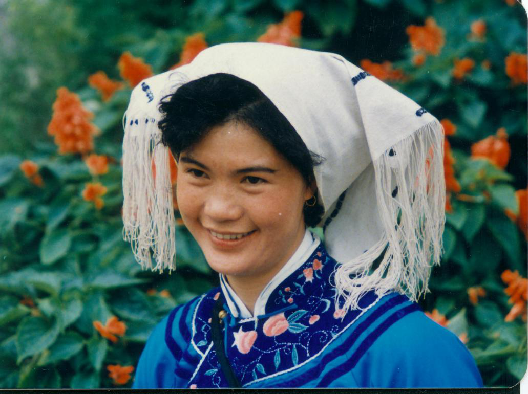 壯族服飾以藍(lán)黑為主調(diào)。壯族婦女的服飾端莊得體,樸素大方。大部分地區(qū)婦女上身為藍(lán)黑色偏襟無(wú)領(lǐng)衣,下身為藍(lán)黑色寬腳褲,僅桂西北保存多彩對(duì)襟上衣。這是壯族婦女兩種基本的服飾,但在紋樣及配套顯出各地的特點(diǎn)。桂西北地區(qū)婦女上身穿深藍(lán)色或帶花有色短衫,外套白色無(wú)領(lǐng)對(duì)襟上衣,胸前只有兩排布紐扣,前胸露出帶花內(nèi)衣,內(nèi)外互相映襯,淡雅秀麗。青黑色寬腳褲,離褲腳幾寸處鑲有紅藍(lán)一寬一窄兩道欄干。頭戴艷麗的印花或提花毛巾。從頭到腳形成紅白黑或藍(lán)白黑三種色彩,對(duì)比鮮明。云南文山壯族苗族自治州壯族婦女服裝極有特色。儂支系婦女上身為天藍(lán)色或青黑色偏襟鑲邊衣,無(wú)領(lǐng),密紐扣,矮領(lǐng)口及離袖口兩寸處鑲有五道顏色與寬窄均不相同的壯錦鑲邊;下身為與上身有反差的藍(lán)色或黑色寬腳褲;頭纏多道彩色鑲邊的藍(lán)黑色頭巾,巾尾略垂于腦后;腰系彩道鑲邊(上沿)的梯形圍裙;胸懸鎖形銀飾,著銀項(xiàng)鏈。