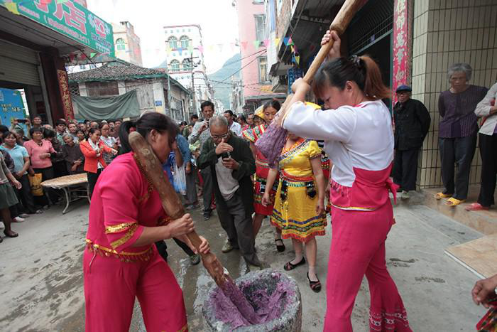 這一節(jié)期,各家各戶都準(zhǔn)備“糍那”、“迎霜粽”等各種特色食品,招待親朋好友,人們以有朋友到家宴飲為榮。