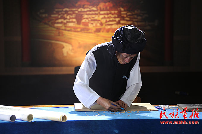 云南省級“非遺”傳承人、馬關(guān)壯族農(nóng)民版畫師盧正林在制作版畫