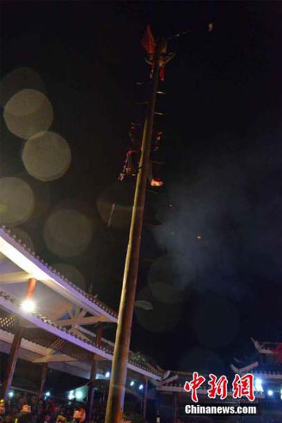 12月6日夜晚,在中國瑤族之鄉(xiāng)廣西金秀瑤族自治縣的盤王節(jié)上,當(dāng)?shù)噩幾灏傩胀ㄟ^祭盤王、還盤王愿,祈求風(fēng)調(diào)雨順、五谷豐登