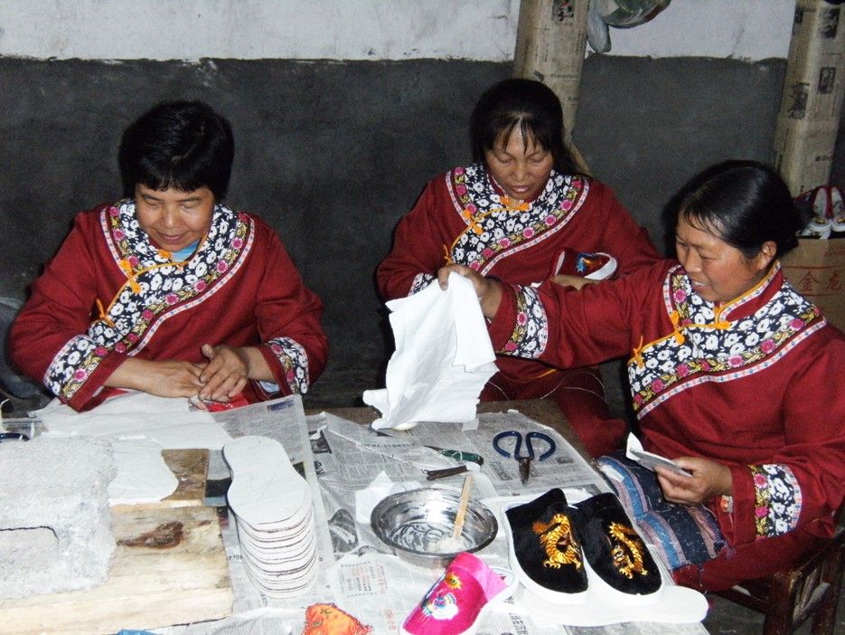 恩施土家族苗族自治州咸豐縣高樂(lè)山鎮(zhèn)官壩村土家人做繡花鞋 老鐵供圖