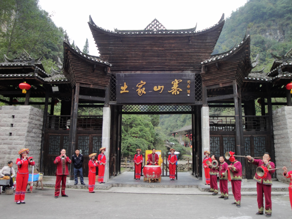 圖為湖北宜昌點軍區(qū)車溪土家山寨迎賓場面 老鐵供圖