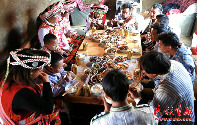 “過去我們一家吃除夕團(tuán)圓飯,有點肉就不錯了,哪會有如此豐盛的宴席。你看如今這滿桌子十幾道菜,吃不完、喝不完,全靠黨和國家的政策好啊。”在談到春節(jié)的變化時,云南省維西傈僳族自治縣保和鎮(zhèn)臘八底村的蜂大興深有體會。