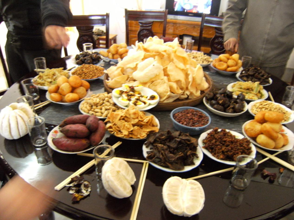 畬族人的副食多取之于山,蘑菇、竹筍、山藥、山野菜等大山中常見的野生植物,都被畬族人食用,而農(nóng)閑時節(jié)畬族男子會上山打獵,以改善伙食。蔬菜主要有芥菜、白菜、卷心菜、蘿卜、水芹、茄子等,瓜豆類有南瓜、葫瓜、苦瓜、冬瓜、豇豆、豆角等。在水田里勞作時,還可以撿田螺、泥鰍、鱔魚等加餐。