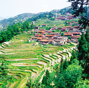 畬族主要聚居在浙江省和福建省山區(qū)的丘陵、山谷盆地。浙江景寧是我國唯一的畬族自治縣。畬族聚居的村寨都在離縣城不遠(yuǎn)的大山里,大都選擇避風(fēng)向陽、有水源的地方建房成村。在村寨四周栽種松樹、楓樹、榅樹、苦櫧,房前屋后種毛竹、果樹。村口有樹能擋風(fēng),屋后種樹能蓄水,空氣也格外新鮮,因此,便有了“造成風(fēng)水畫成龍”的畬族諺語。
