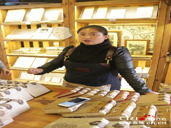 東巴紙坊工作人員介紹東巴紙的歷史