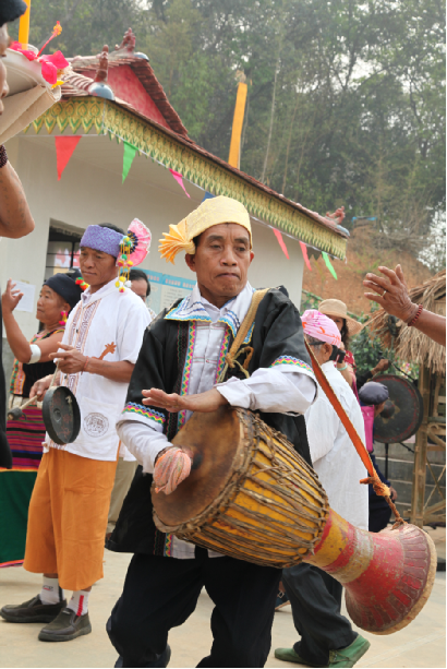 新年到時(shí),漥墨寨的布朗族人們事先就發(fā)出通知,邀請外寨人來一起“跳歌”,在間隙時(shí)間也常常有兩寨人集體賽唱歌,誰輸了誰就得出豬頭請客,在一陣生動(dòng)詼諧的對唱以后,人們又繼續(xù)“跳歌”,往往通宵不散,難解難分。