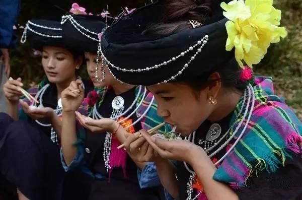 阿昌族以大米為主食,尤其喜歡食用大米制成的“米線”。他們喜歡吃腌臘肉、干牛肉以及腌菜、腌竹筍等酸性食品,還喜歡喝自釀的米酒和白酒。白酒用糯米飯加甜酒曲發(fā)酵制成,味道香甜可口、生津解渴、回味無(wú)窮。除此之外,阿昌族還有嚼煙的習(xí)慣。
