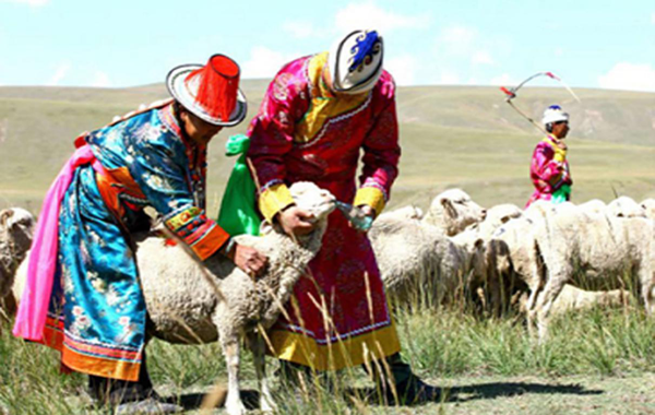 裕固族從事畜牧業(yè)生產(chǎn)已有悠久的歷史。牧民畜養(yǎng)牲畜的種類以羊(綿羊、山羊)、牛(分牦牛、犏牛、黃牛)、馬為主,還有少量的驢、騾,明花鄉(xiāng)尚有大量的駱駝。在人們的經(jīng)濟生活中,絕大部分生產(chǎn)和生活資料都依賴于牲畜和畜產(chǎn)品的供給。裕固人居住用的帳篷、毛氈、穿的衣服、靴襪,日常飲食的肉、奶都來自畜產(chǎn)品。生產(chǎn)和生活上所用的大部分工具,如毛繩、褡褳、提水工具(皮口袋)、盛物口袋等,也全部是用畜產(chǎn)品制成的。此外,牲畜還是乘騎和馱運的重要工具。