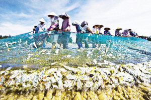 京族人民拉大網(wǎng)捕魚。資料圖片