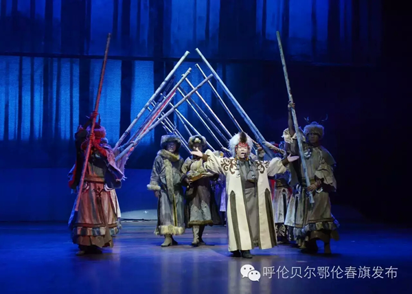 《勇敢的鄂倫春》,由烏蘭托嘎?lián)嗡囆g(shù)總監(jiān),塞納為編劇,三虎、丹德爾(俄羅斯)、吳莽三人出任總導(dǎo)演;全體演職人員63人,由鄂倫春自治旗烏蘭牧騎專業(yè)人員和15名群眾演員組成,其中鄂倫春族藝術(shù)家曲云、白娟為國家一級演員,鄂倫春族群眾演員來自獵民村與相關(guān)城鎮(zhèn),演員隊(duì)伍中年齡最大的71歲,最小的7歲。演出團(tuán)隊(duì)中鄂倫春族演員占到了接近一半?!队赂业亩鮽惔骸芬远鮽惔好褡濯?dú)有的狩獵文化為主線,詩意地講述了狩獵生活的全過程,生動鮮活地展示了鄂倫春民族勇敢、細(xì)膩的民族精神和性格特征。該劇還采用了高于原生態(tài)表現(xiàn)手段的唯美手法,將古樸的民族傳統(tǒng)文化與現(xiàn)代藝術(shù)元素巧妙地結(jié)合在一起,既尊重了民風(fēng)民俗,又符合當(dāng)代人的欣賞趨向,煥發(fā)著動人心魂的強(qiáng)大魅力。