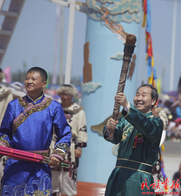 赫哲族“烏日貢”節(jié)在黑龍江同江市舉行。國家民委專職委員葛忠興(赫哲族)點(diǎn)燃象征火炬的圣香,開啟了今年的節(jié)日活動(dòng)