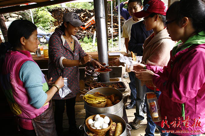 珞巴族農(nóng)家樂小吃攤也吸引了許多游客(列來拉杜 攝影)